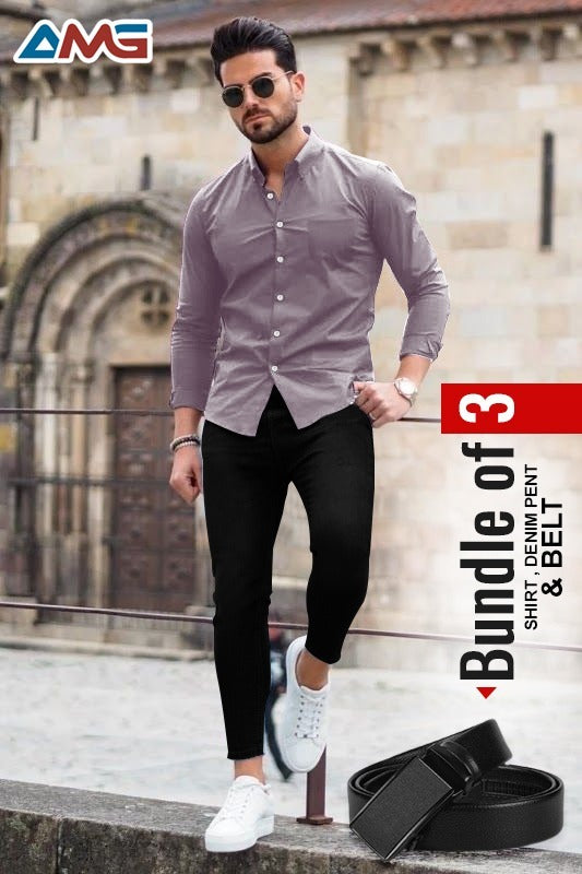 PACK OF 3 MEN PENT, SHIRT & BELT